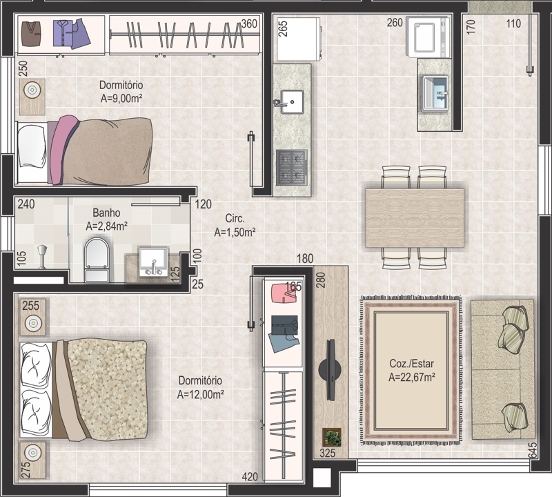 Apresentamos um empreendimento com ótima localização e excelente posição solar. Com três apartamentos por andar, as unidades de dois dormitórios oferecem um layout funcional, com sala de estar e cozinha integradas, criando um ambiente acolhedor e convidativo.