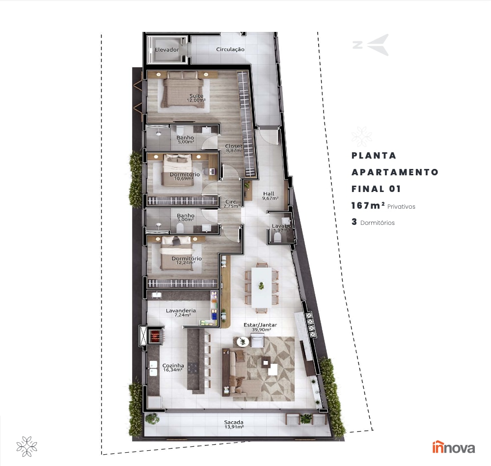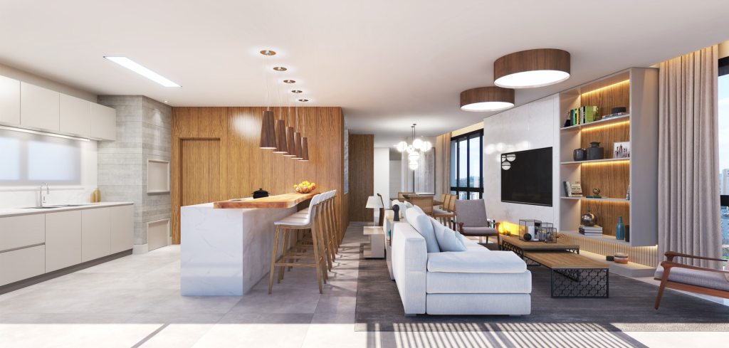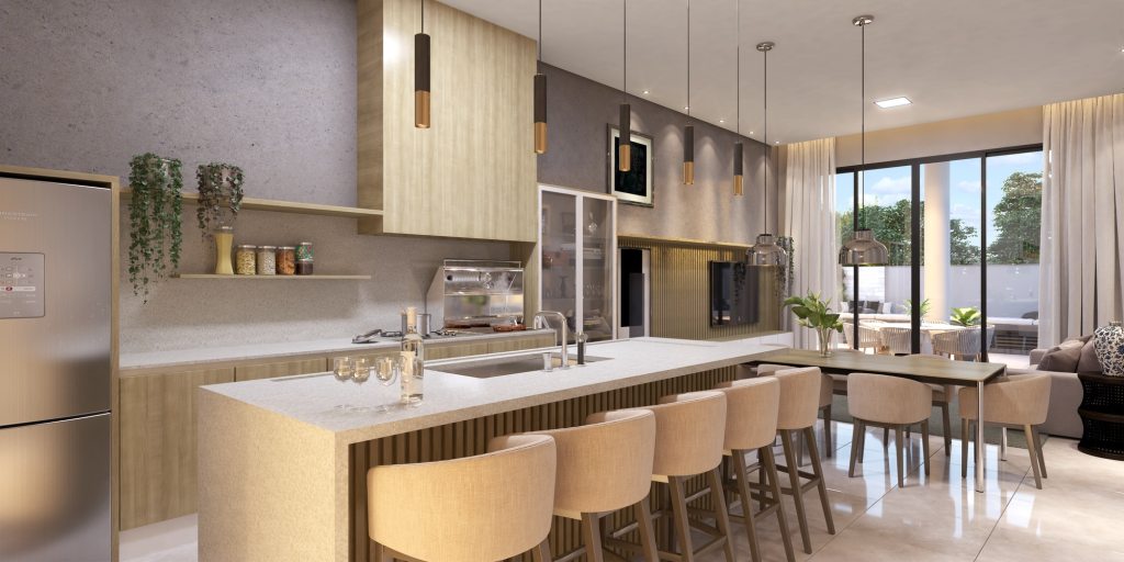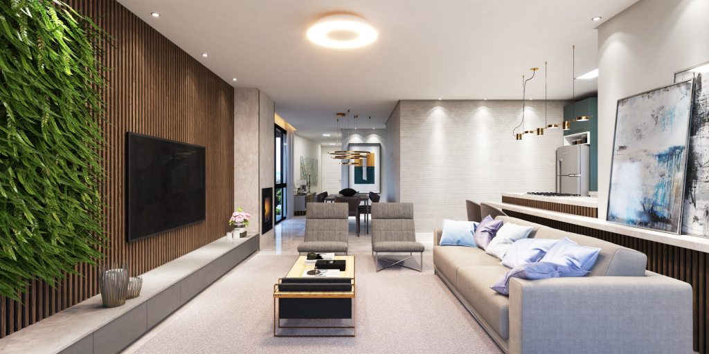 No Casa Flores, os espaços amplos e integrados com grandes esquadrias tornam os apartamentos abertos e arejados, permitindo a entrada de muita luz natural. A ideia é descomplicar a vida, favorecer o convívio e, principalmente, abrir espaços para que cada um possa imprimir a sua própria identidade.